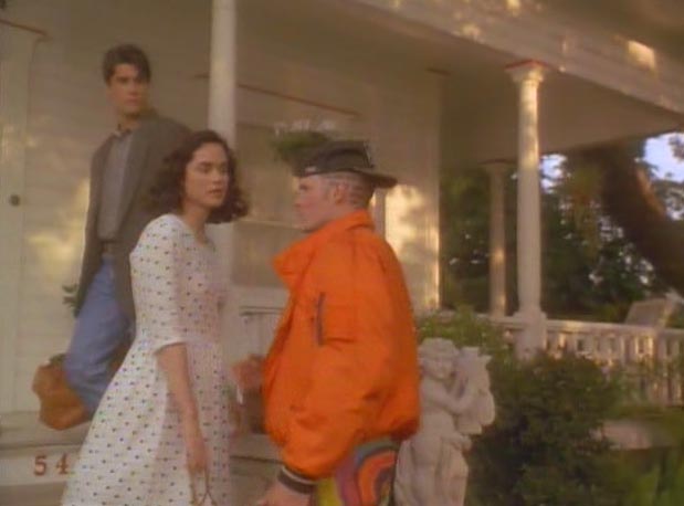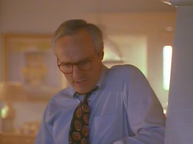 Skipping forward, Ice and Co. see Kathy on TV – as well as two black suited guys. The two guys a stunned when Kathy’s dad (played by Family Ties dad Michael Gross) appears on screen. We then discover he has a shady past.