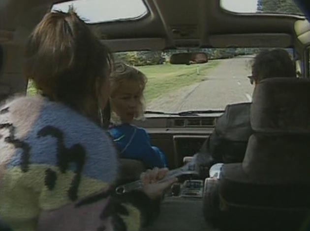 The music video Director Grant Evans (Alan Dale) and his wife are racing in separate cars, while talking to each other on mobile phone bricks, spinning up the road. They accidentally nearly crash into another car coming head on. Driver shakes his arms in anger. Could he be the killer?
