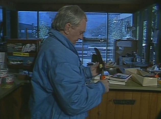 At the boat shed milk bar, we meet their ‘celebrity’ cameo, John-Michael Howson. He’s there on holidays, checking out the store. He talks to Merde, the sales assistant. Merde assures John-Michael that even though there will be a film crew, he can enjoy his holidays. John-Michael drops a horror book on the counter, and picks up a hunting knife. Could he be the killer?