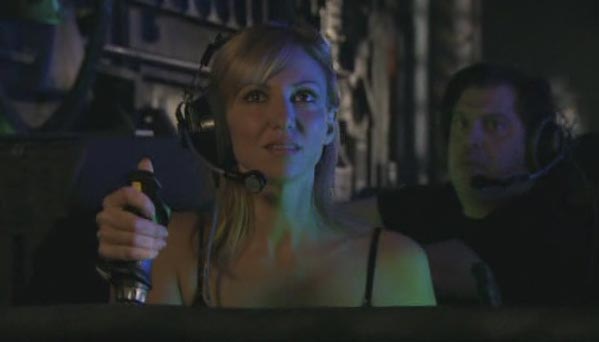 So, Debbie is in a mini submarine exploration vehicle, checking out the Alaskan waters, purely controlled by a feeble joystick and a control panel that’s a plastic stencil. With CGI as realistic as Toy Story (note: sarcasm), Debbie checks out the marine life – tortoises, whales, fish – they’re all there. She then discovers some sonar interference which the helicopter has placed in the water. It explodes, which chisels away at a gigantic iceberg, revealing some type of mammal frozen in time – the octopus. The submarine films the scene with its grainy footage, and Debbie returns to the surface.