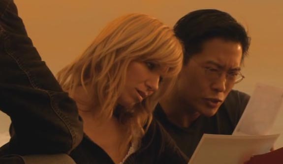 But the Professor wants back up, so he calls in his mate – The Doctor, who flies in from Japan. As soon as he touches down, he meets up with Debbie. Straight away – sexual attraction. We really needed some romance in this movie. After some hearty handshakes, they head back to the office, where The Doctor shoes Debbie and The Professor some sketches of what might be an octopus, but not sure… mainly images that look like they were drawn by a ten year old. Just as they realise it could be a giant octopus, a DVD arrives at the right time in the mail, featuring the video from the submarine from earlier in the movie.