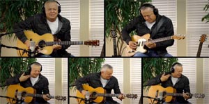 In this video, he performs multiple layers of his tune, using acoustic and electric guitars, splicing the video together.