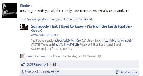 Australian muso Gotye has reached new heights with his 2011 hit song Somebody That I Used To Know, with singer Kimbra joining the party as the female sidekick for the tune. With the original tune hitting over 35 million views since July 2011, the popularity has been astounding.