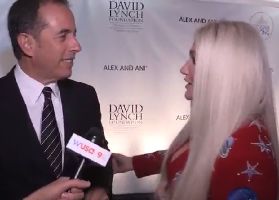 Walking on the red carpet for a charity event developed by the David Lynch Foundation, headline star Seinfeld was having a chat with radio announcer Tommy McFly about something to do with being tired all the time, when he was approached by pop songstress Kesha… who was fan-girling big time.