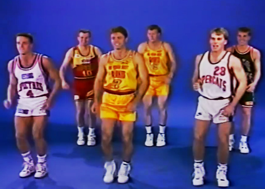 It appears someone at the NBL Headquarters were doing some dusting in the storage room in preparation for the Heritage Round, and found this vintage piece of material which appears to be from the early 1990s – a small gathering of top notch basketball players of the time doing a dance routine.