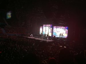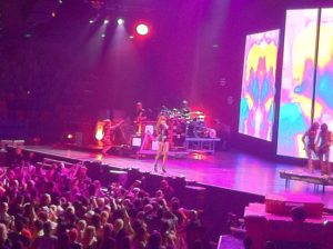 Crowd interactivity was down to the standard “Hello (insert city here)! I love you all! Thank you for coming!” and enticing the crowd to yell her name during What’s My Name?, while Rihanna strutted her stuff up and down the catwalk, occasionally touching the close crowd member. With about a minute pause during costume changes, the crowd was entertained by a video or a band member having a jam session, which melted into a segue way into the next song.